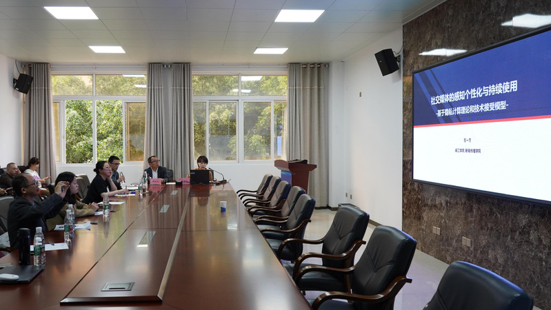 彭丽霞老师以B站为例,探讨健康科普类中短视频的创作逻辑和关键构成要素,并根据定性比较分析结果提出优化方式,揭示健康科普短视频传播效果的影响因素和创作规律。郑明轩老师分享体验经济视角下热门手机游戏付费模式的研究,他以AIDA模型进行分析,指出游戏产品应具有交互性和模拟性,在带来的体验感的同时具备传播属性。冯蔚宁老师以校融媒体发展为例分享“同人小说 融媒体采编实务实训探析”,将融媒体时代技术作为出发点,探索传播新途径,强调融媒体时代采编实务实训创新的重要性。左一方老师以“社交媒体的感知个性化与持续使用”为题作分享,她指出此研究以隐私计算理论和技术接受模型(TAM)为基础,构建抖音用户持续使用意向影响因素理论模型,探讨智能推荐系统的使用如何影响用户在收益和风险之间的权衡。