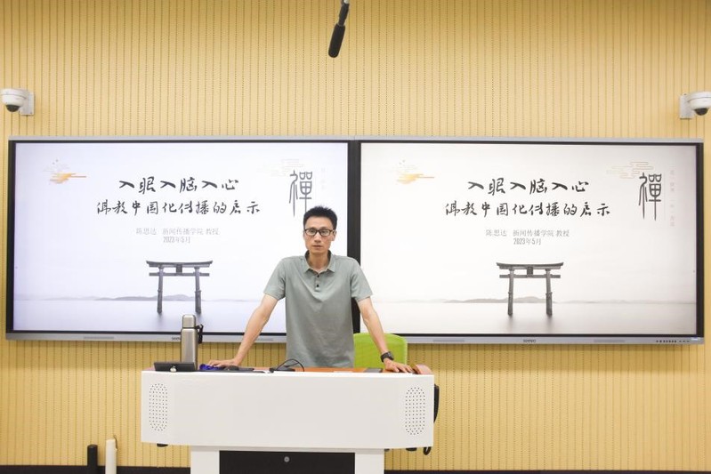 讲座伊始,陈思达教授简要回顾了汉传佛教传播的历史。在古代交通运输条件不便、信息传播手段落后的情况下,佛教作为一个纯粹的外来文化,能够跨越喜马拉雅天堑,在本土文化本已相当深厚的中国成功落地生根,做到入乡随俗,与儒家和道家三足鼎立并融合发展,成为中华文化不可或缺的重要组成部分。这为研究国际化传播提供了一个十分经典的成功案例。