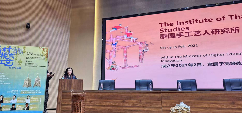 随后,泰国前教育部副部长、公共卫生部副部长、泰国社区学院院长、泰国地方手工艺研究院院长Sirikorn Maneerin博士发表了题为“泰国地方手工艺的智慧”的演讲。Sirikorn 博士深入剖析了泰国地方手工艺的智慧和文化价值,强调了这些手工艺在地方社区中的重要作用。她介绍了泰国在手工艺品创新与市场推广方面的成功经验,展示了如何通过手工艺促进社区经济增长和文化认同的案例。