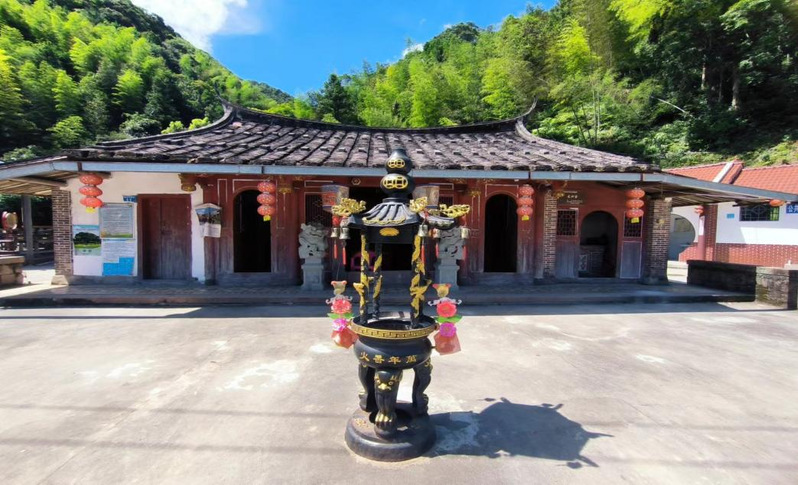 在“罗卜坑”溪谷旁,只需几步,就能看到一座建造在船型地面上的庙——龙兴宫。正对庙前的是一座塔式香炉,左侧是一座鼎式香炉,庙的门前是两尊公母石狮,用于镇煞避邪。