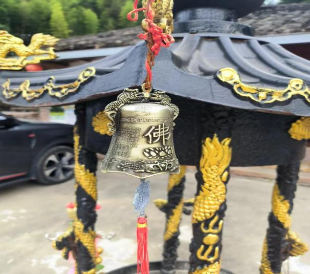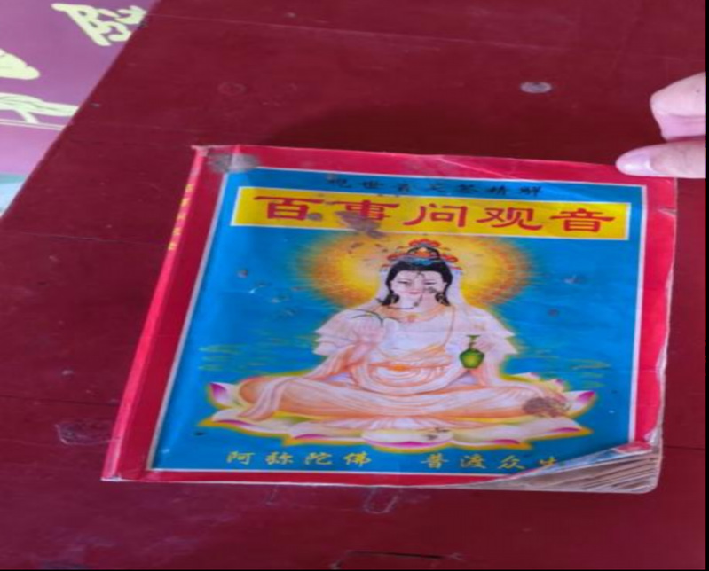 二是佛教元素的融入,庙外的塔式香炉上挂有小型佛钟;并且功德箱上写的是“南无阿弥陀佛”“随缘乐助,广种福田”的佛教用语;令人忍俊不禁的是,在龙兴宫这一民间信仰和道教色彩浓厚的场域中,解签所用的参考书竟是观世音灵签,而不是妈祖灵签。