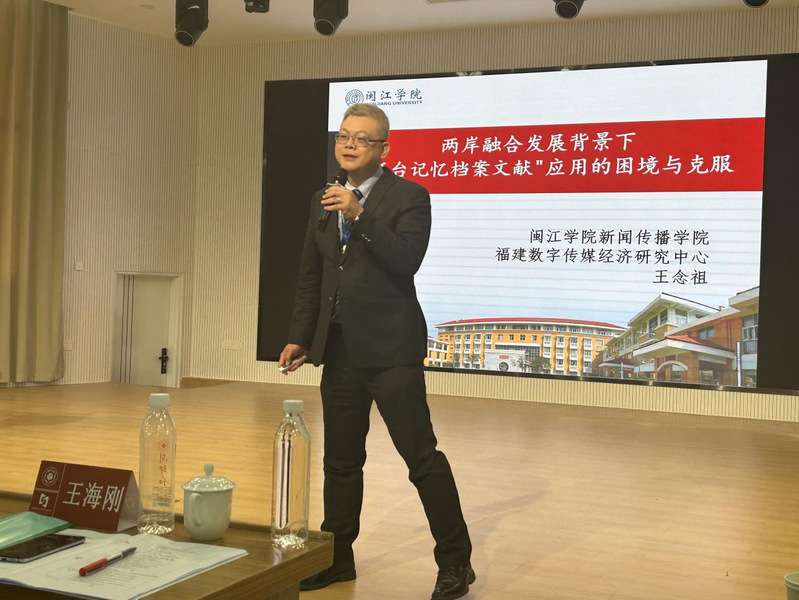 本次会议聚焦两岸高校数字出版专业教育以及闽台文化与传播等重要议题。王念祖教授围绕“两岸融合发展背景下‘迁台记忆档案文献’应用的困境与克服” 这一主题进行了主旨演讲。