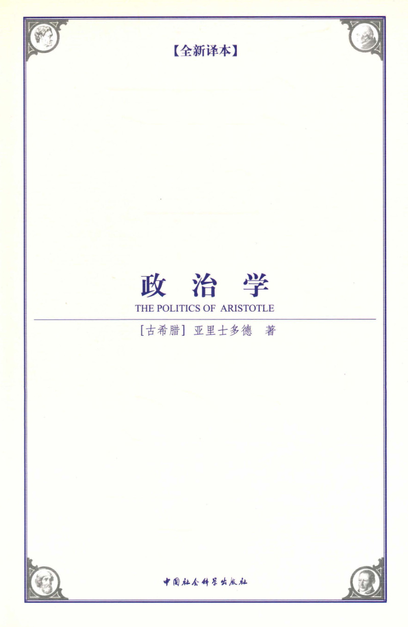 《政治学》是亚里士多德探讨政治问题和政治原理的一部著作,可以说是政治学的创始之作。本书讨论了两类问题:(一)关于政治理论的问题;(二)关于现实政治体制的探讨。它深入而又系统地探讨了国家和法律等政治问题,其丰富的内容和完整的体系,给现代政治学产生了极为深刻的影响。