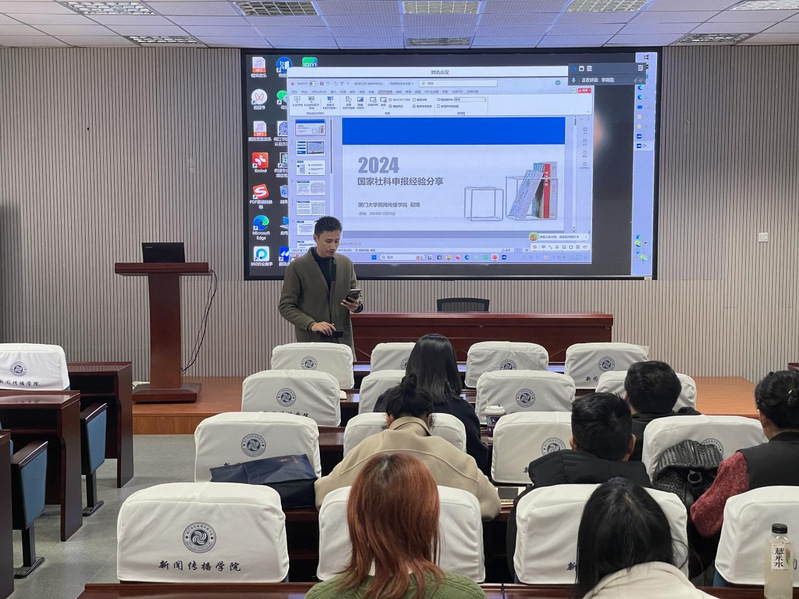 分享会在同人小说 副院长陈思达主持下开始,首先,殷琦教授通过展示2024年度国家社科基金申报项目立项总数的增长情况,简要介绍国家社科基金的申报特点,强调申请者坚持注意“四不”原则:不要胡思乱想、不要脱离政策、不要违背兴趣、不要抛弃大纲,鼓励与会者积极申报。