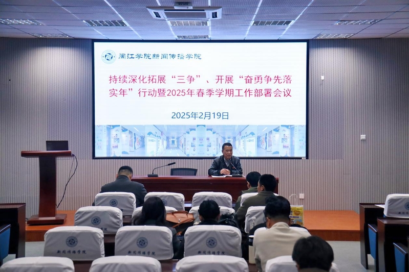 陈国岱传达了校党委书记叶世满、校长舒继武关于学校2024年工作总结及2025年工作部署和要求的讲话精神。陈国岱指出,2025年是“十四五”规划收官、“十五五”规划谋划关键之年,学院工作要重点聚焦应用型人才培养、师资队伍建设、校企融合创新、管理保障机制优化等方面。他强调,要把立德树人放在首要位置、推进五育并举;要不断提炼突出学科特色,高起点、高标准建设新闻与传播专硕点;要全面实施教师分类管理,激发有组织科研和社会服务活力;要强化党建引领、守正创新,促进“一融双优”上台阶上水平;要抓牢安定稳定,努力营造风清气正氛围,确保改革和发展顺利进行。