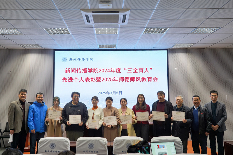 会上,张林宣读了学院2024年度“三全育人”先进个人表彰名单。王燕星等10位教职工因在2024年度课程、科研、实践、文化、网络、心理、管理、服务、资助、组织等领域育人工作中表现突出,受到表彰。在热烈掌声中,陈国岱书记与戴程副院长为获奖者颁奖,院领导与先进个人一起合影留念。
