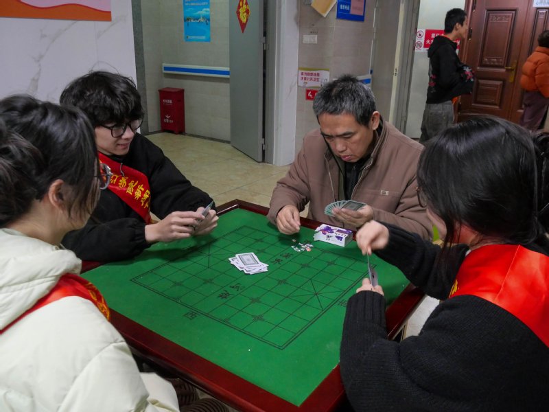 志愿活动不仅有唱歌跳舞这些才艺表演,还有和老人们一起下棋、打牌、玩小游戏、跳手势舞等益智类活动。