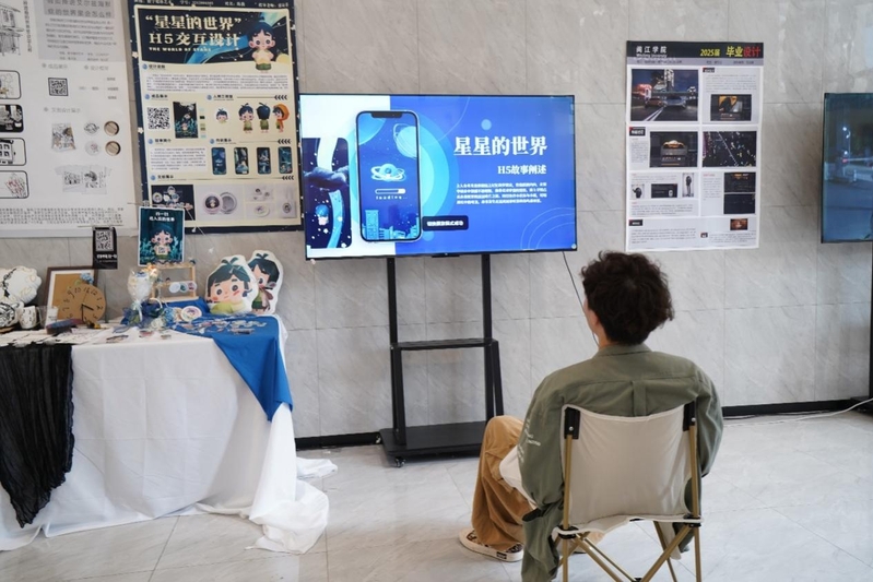 展览作品涵盖数字影像、二维动画、虚拟交互、文创设计等多个方向,风格多元、题材丰富,充分展现了青年创作者在艺术语言、媒介技术和社会观察上的探索与成长。有些作品尝试引入AIGC工具与设计思维结合,亦有多个项目深入本土文化、关注社会议题,体现了毕业生们多维度的表达意图与艺术思考。