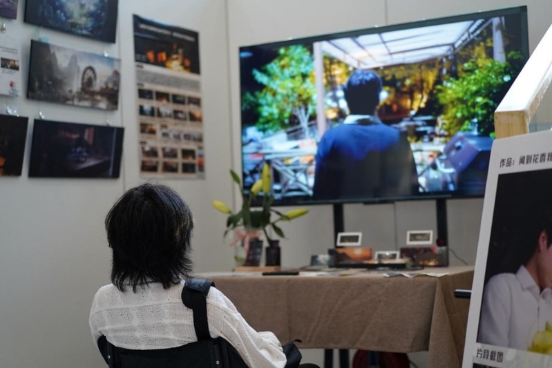 观众现场体验毕业生交互作品