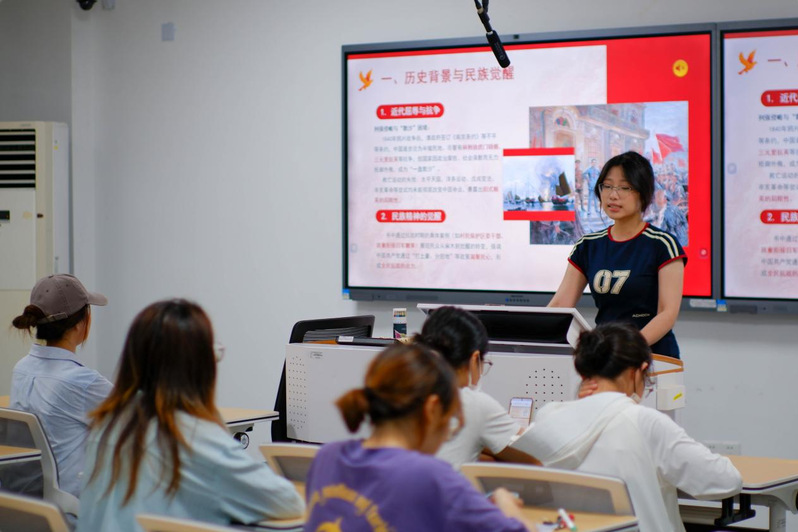 主讲人以书中金句展开解读,带领同学们再次深入理解新中国发展历程,共同揭示此书给予新时代大学生前行的启示,即坚定理想信念,厚植爱国情怀,强化责任担当,树立“四个自信”。