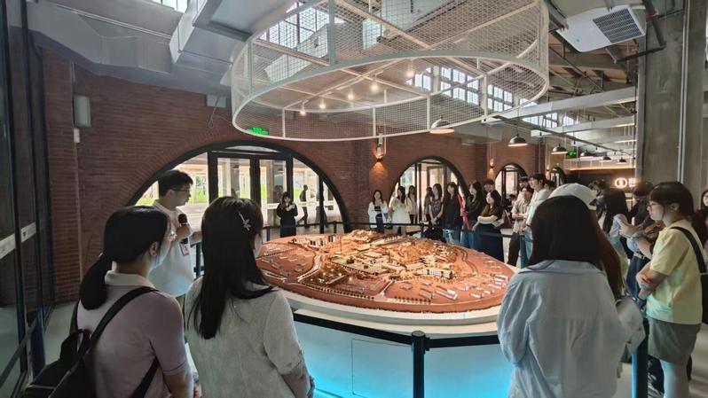 同学们在红旗坊文化产业园听取了园区整体产业构造与规模的详尽讲解,对其运作模式有了初步认知。红旗坊的前身是建于1951年的德化国营红旗瓷厂,如今在泉州文旅集团与德化县携手改造下焕然一新,成为集文化体验、旅游观光、产业创新等多功能于一体的文旅新地标,规划用地 265 亩,总建筑面积达 13 万㎡,投资约 13 亿元。