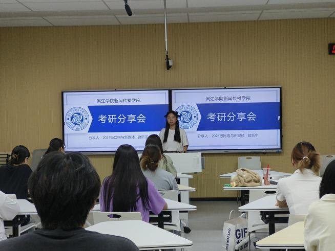 6月14日,同人小说 召开优秀毕业生考研心得分享会,2025届优秀毕业生广告学专业杨小霞、网络与新媒体专业曾新宇分享考研经验,40余名学生参加。