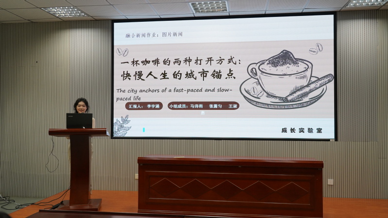 讲座开场,陈思达副院长指出,融合新闻是传媒行业转型的核心赛道,为活动锚定实践价值坐标。随后,2024级数智新媒体传播人才定制班学生围绕作品呈现、选题依据、自我赏析与自我批评四个维度展示与分享了创作成果。曾艳老师在肯定学生作品中人文视角创新价值的同时,也针对每组作品的具体问题给出了专业改进建议,例如如何解决图片构图不够精准、图文结合缺乏默契、动态场景捕捉不到位的问题等。此外,她还进一步延伸探讨了融合新闻中文字、图片、短视频等不同形态的适配逻辑,为学生后续的创作实践提供了清晰指导。