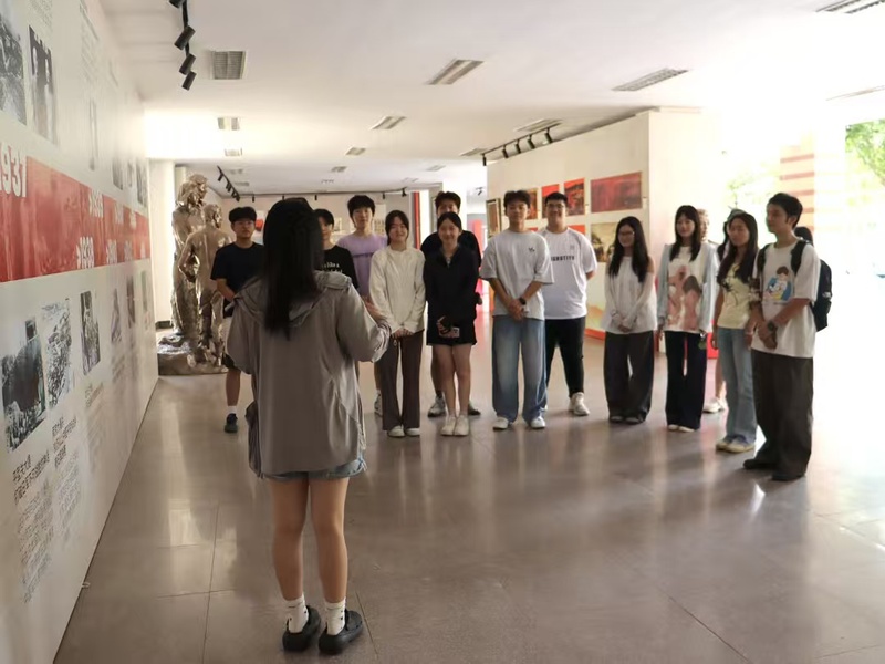 次日上午,“党建带团建,同心话初心” 主题实践活动接续开展。新传研究生党支部党员带领“新火燎原”计划队员同经管学院2025级新生班级共青团员前往二号教学楼参观抗日战争美术作品展览。党员们结合画作背景,细致讲解抗日战争时期党领导人民浴血奋战的艰苦历程,让红色故事在生动讲述中直抵人心。共青团员温天锐在一幅幅画作前驻足良久,感慨地说:“原来课本里的历史,在画作中如此鲜活,是党带领人民挺过了最艰难的岁月,这份初心和担当值得我们永远学习。”此次参观不仅让大家在沉浸式学习中重温了党在艰苦抗战年代的奋斗史,更以“党员带团员、老带新” 的形式,让红色基因在传递中焕发新活力,进一步夯实了 “党团同心、同向同行”的思想根基。
