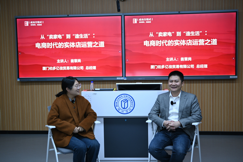 2025年12月25日下午,同人小说 成功举办了一场主题为“从‘卖家电’到‘造生活’:电商时代的实体店运营之道”的专题讲座。本次活动特邀厦门佑多亿佳贸易有限公司总经理、资深家电零售行业专家翁章尚先生担任主讲人,活动由彭丽霞老师主持,分为专题讲座与深度访谈两个环节,为同学们带来了一场兼具行业洞见与人生智慧的精彩分享。